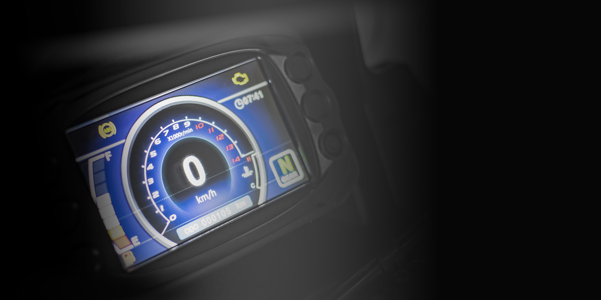 The large, high-definition color LCD display provides clear visibility of key information such as speed and RPM, enhancing safety and convenience while riding.