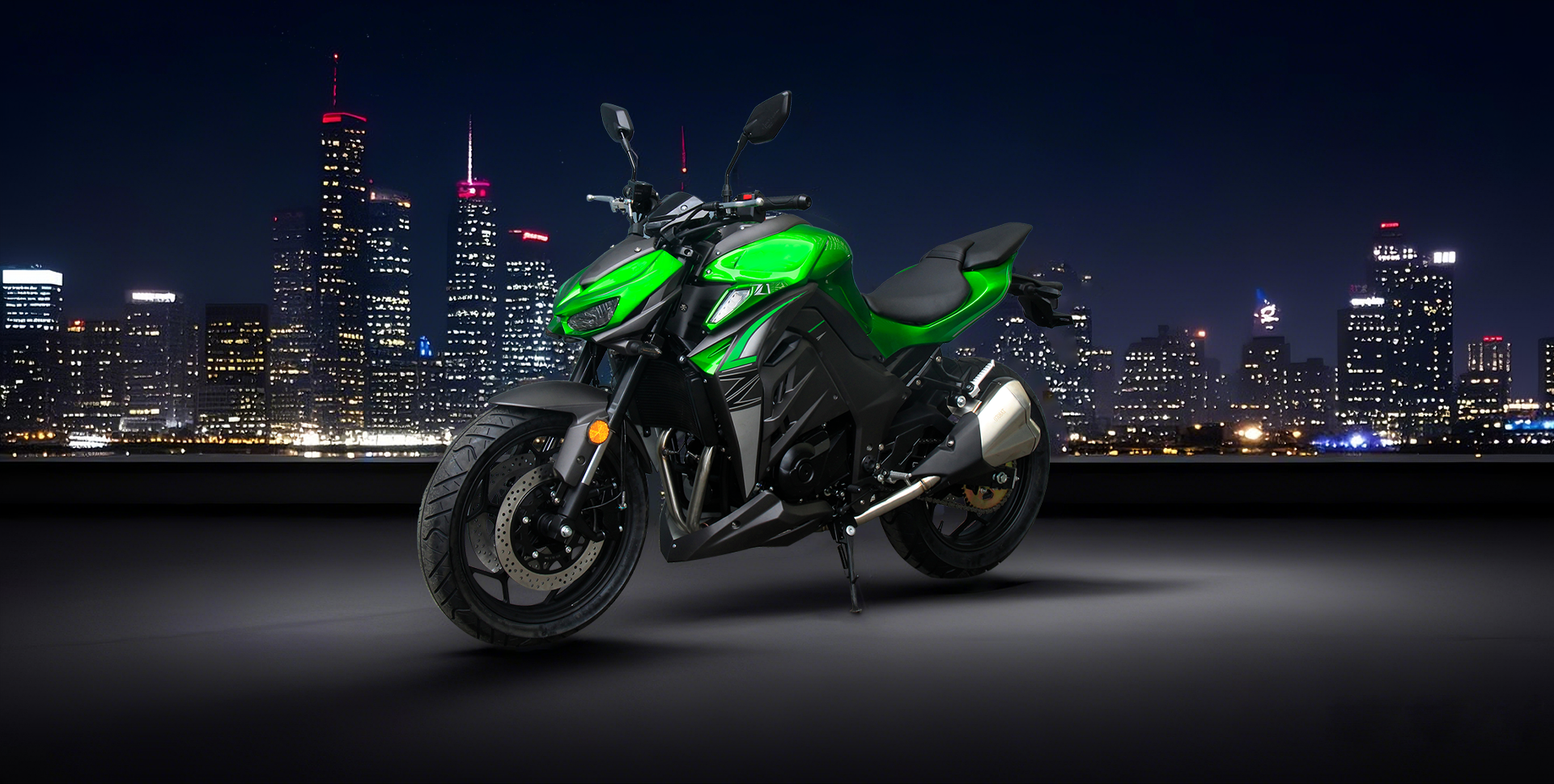Front: 110/70-17; Rear: 140/70-17 sport tubeless tires, designed to handle a variety of road conditions while ensuring a comfortable, responsive ride.