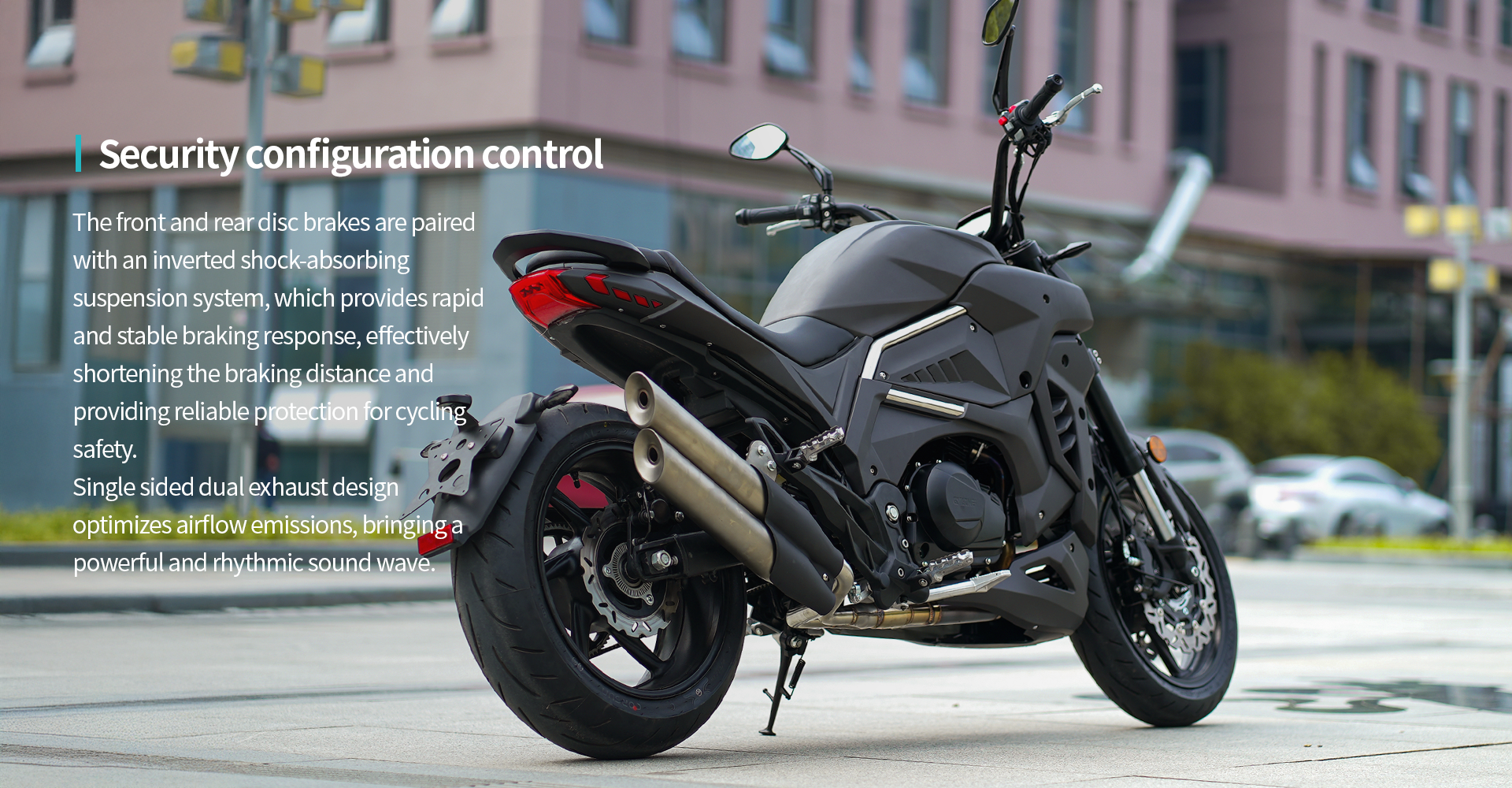 The 255CC dual-cylinder liquid-cooled engine delivers powerful performance, fully under your control.