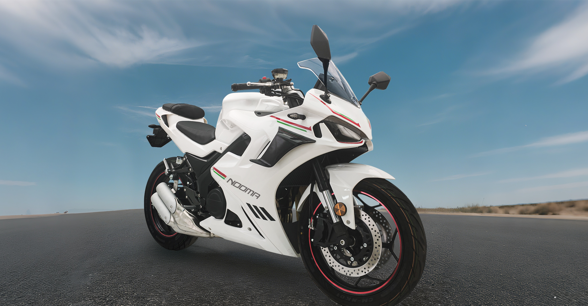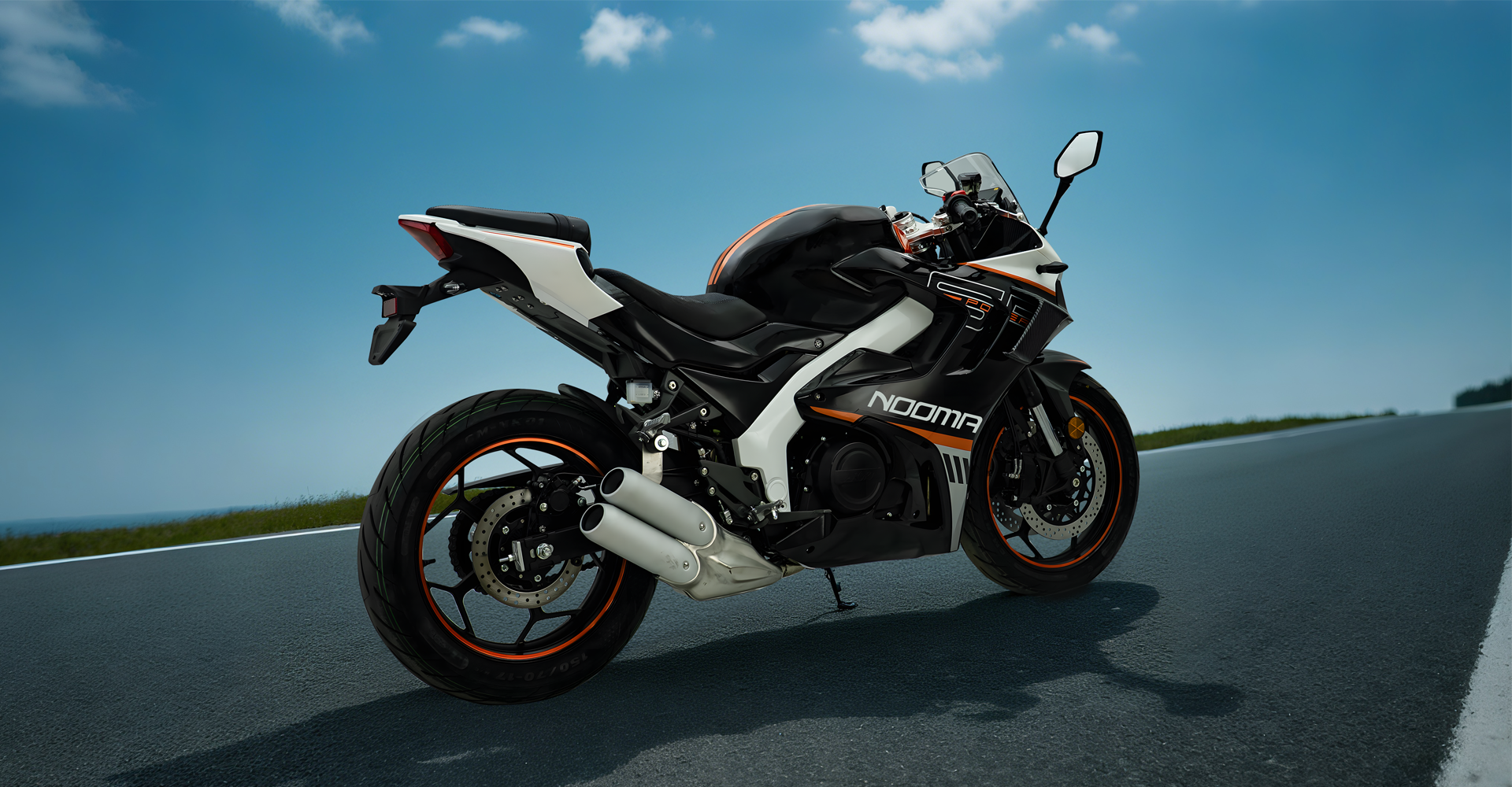 Front: 120/70-17; Rear: 160/70-17 sport tubeless tires, designed to handle various road conditions with ease.
