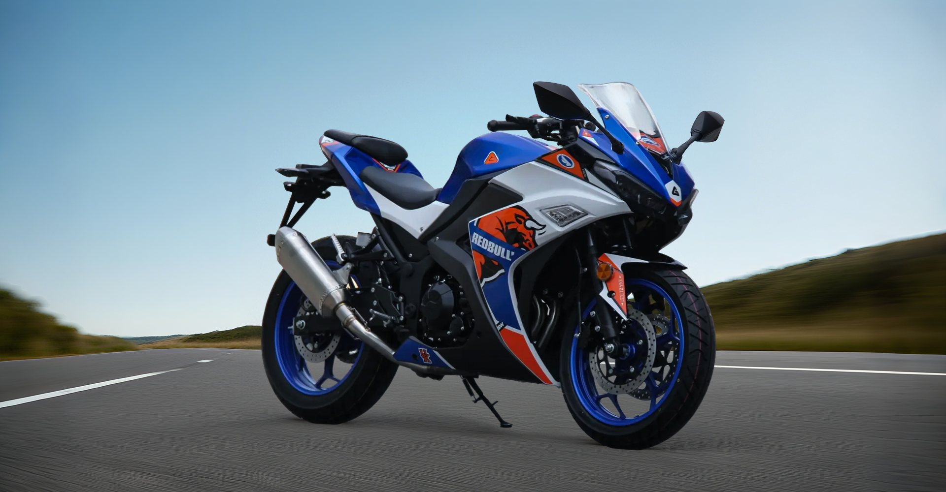 Front: 110/70-17; Rear: 140/70-17 sport tubeless tires, designed to handle various road conditions with ease.