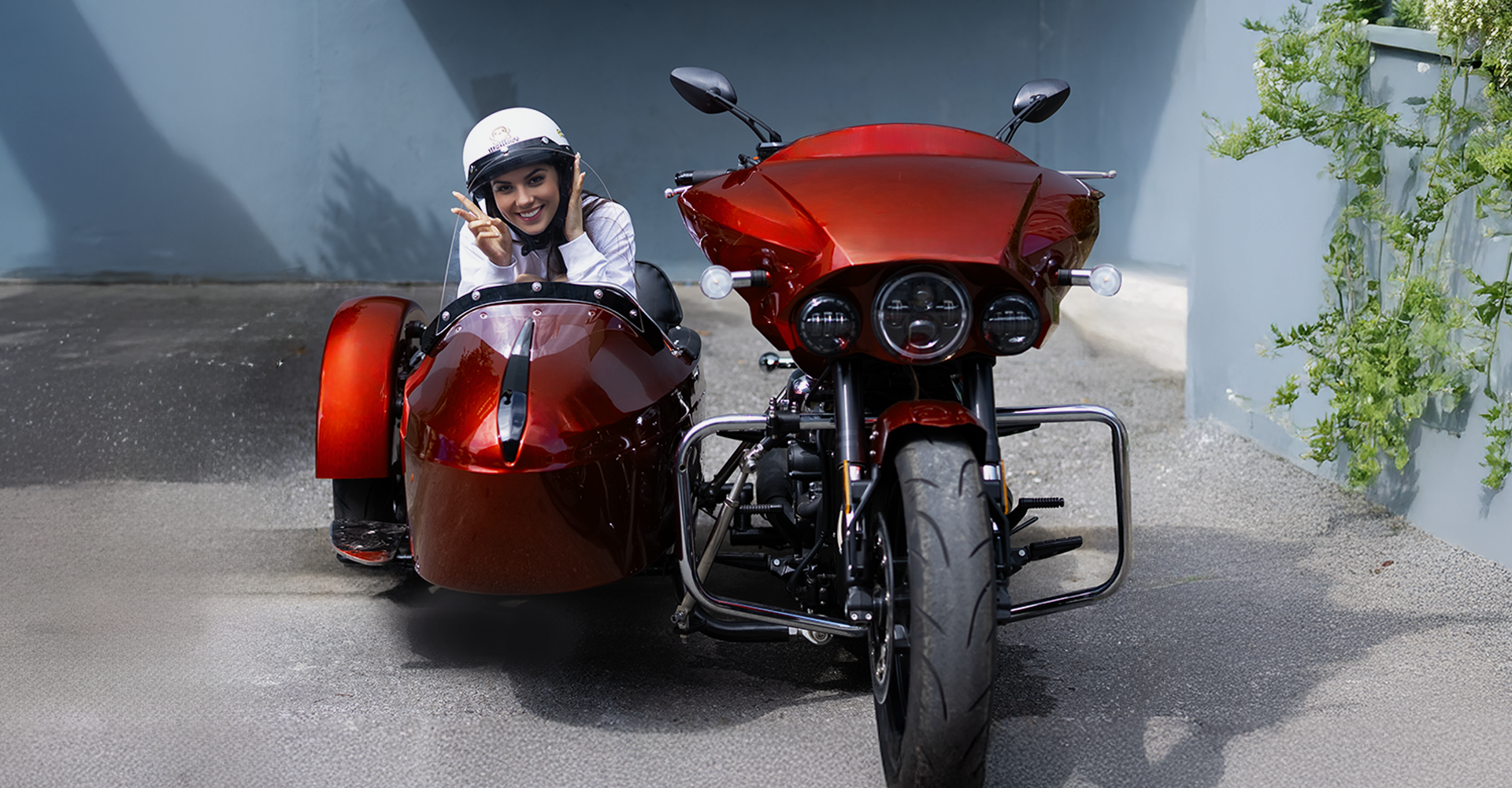 Боковая коляска спроектирована с учетом эргономики, центр тяжести точно распределен, обеспечивая свободу движения ног. При поворотах и на скорости сохраняет маневренность, гарантируя пассажиру комфорт и уверенность.