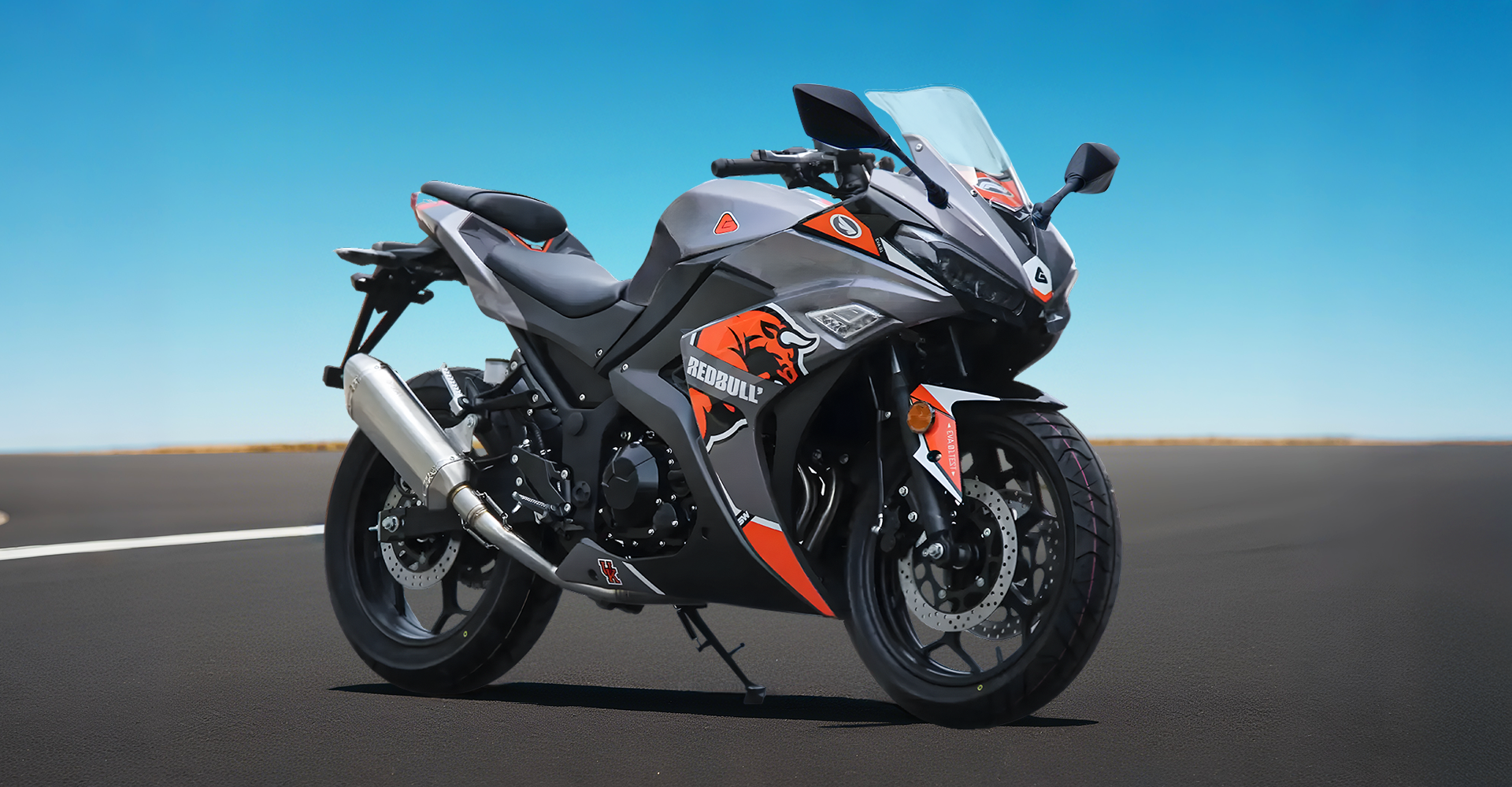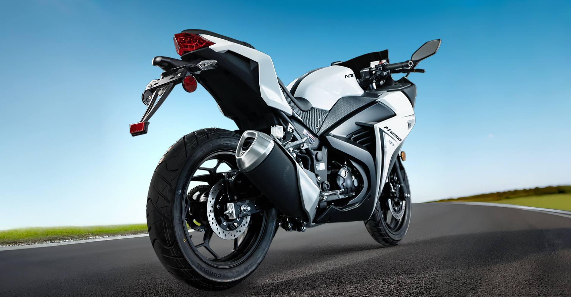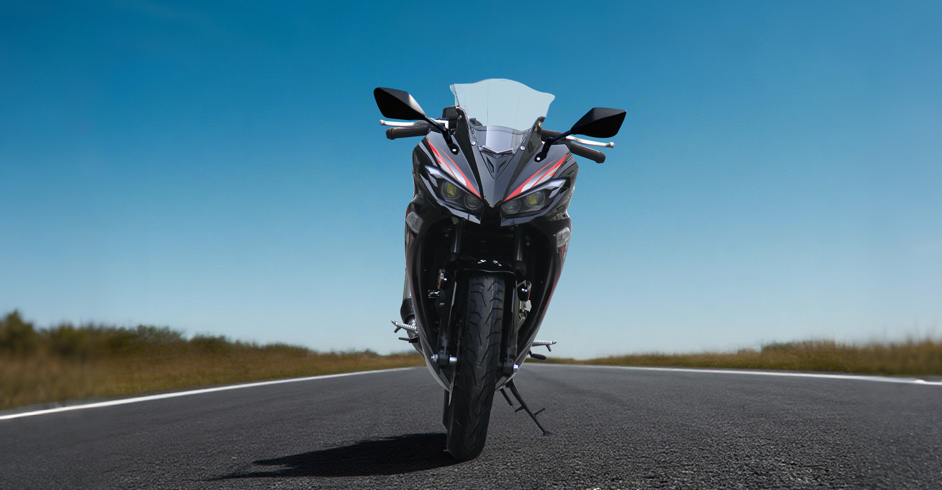 Спортивные бескамерные шины размерности 110/70-17 (передняя) и 140/70-17 (задняя) обеспечивают уверенное сцепление с любым типом дорожного покрытия.