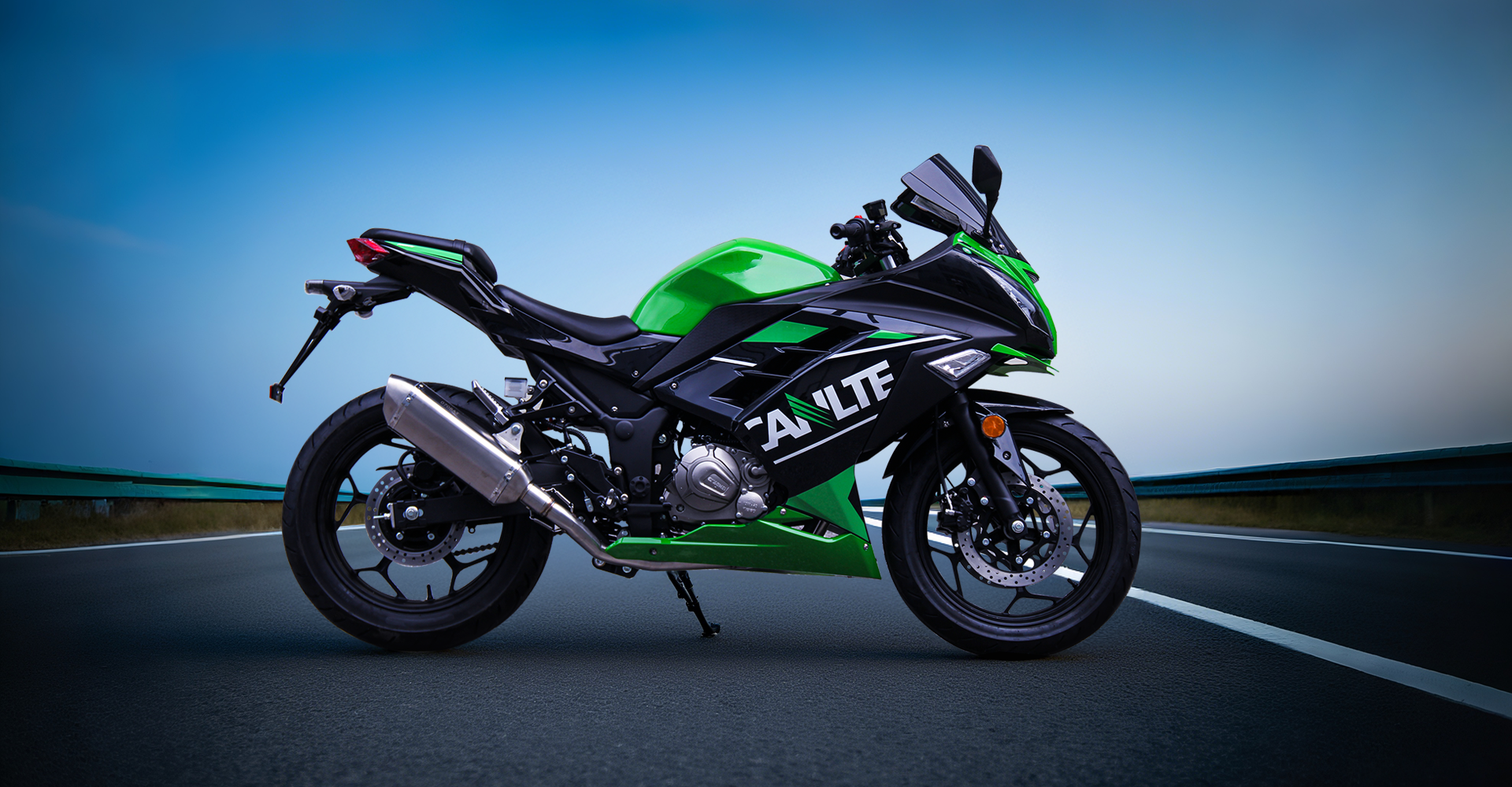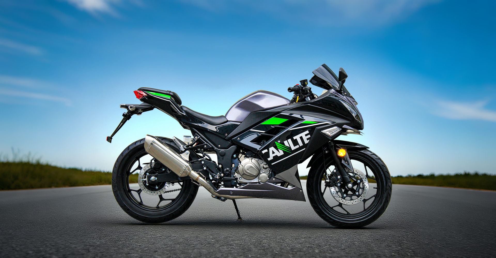 Спортивные бескамерные шины размерности 110/70-17 (передняя) и 140/70-17 (задняя) обеспечивают уверенное сцепление с любым типом дорожного покрытия.
