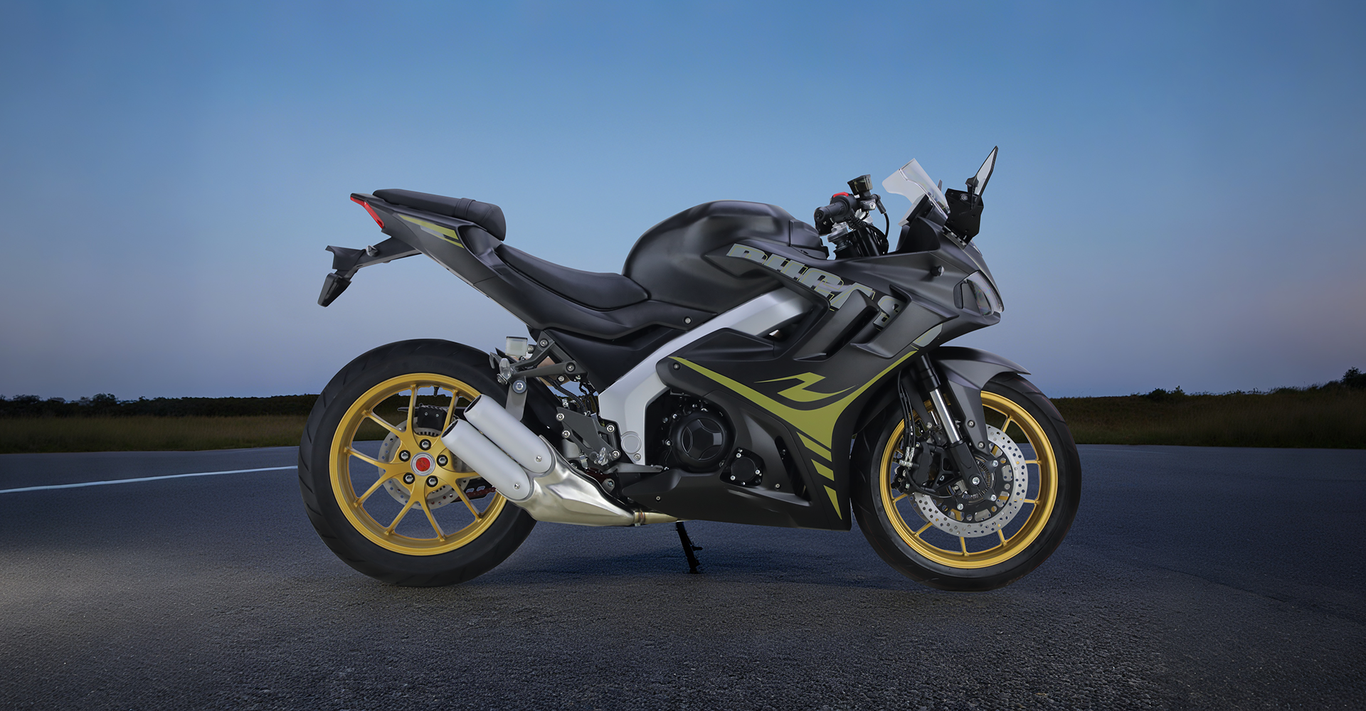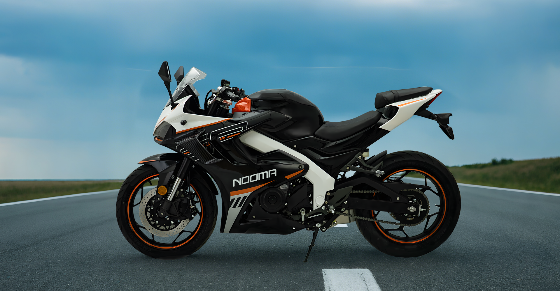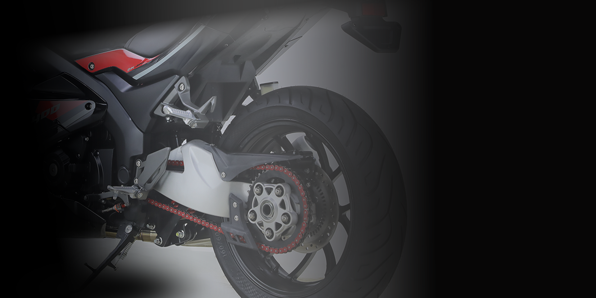 Спортивные бескамерные шины размерности 110/70-17 (передняя) и 140/70-17 (задняя) обеспечивают уверенное сцепление с любым типом дорожного покрытия.