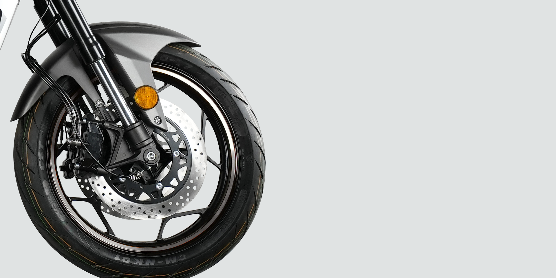 Delantero: pinza opuesta de doble pistón; Trasero: freno de disco monobloque, frenado estable y eficiente.