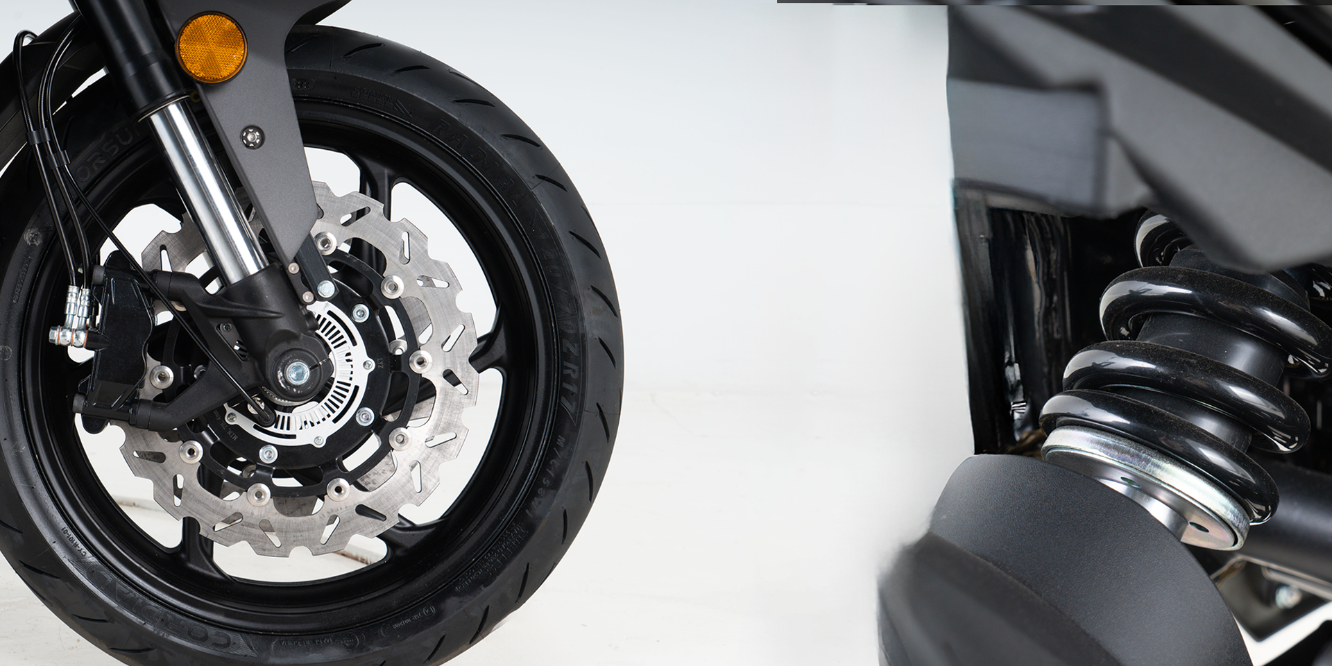 Diseño de neumático trasero ampliado 180/55-ZR17, que aumenta significativamente el área de contacto con el suelo, mejora notablemente el agarre, proporciona mayor estabilidad en curvas y una aceleración más potente.