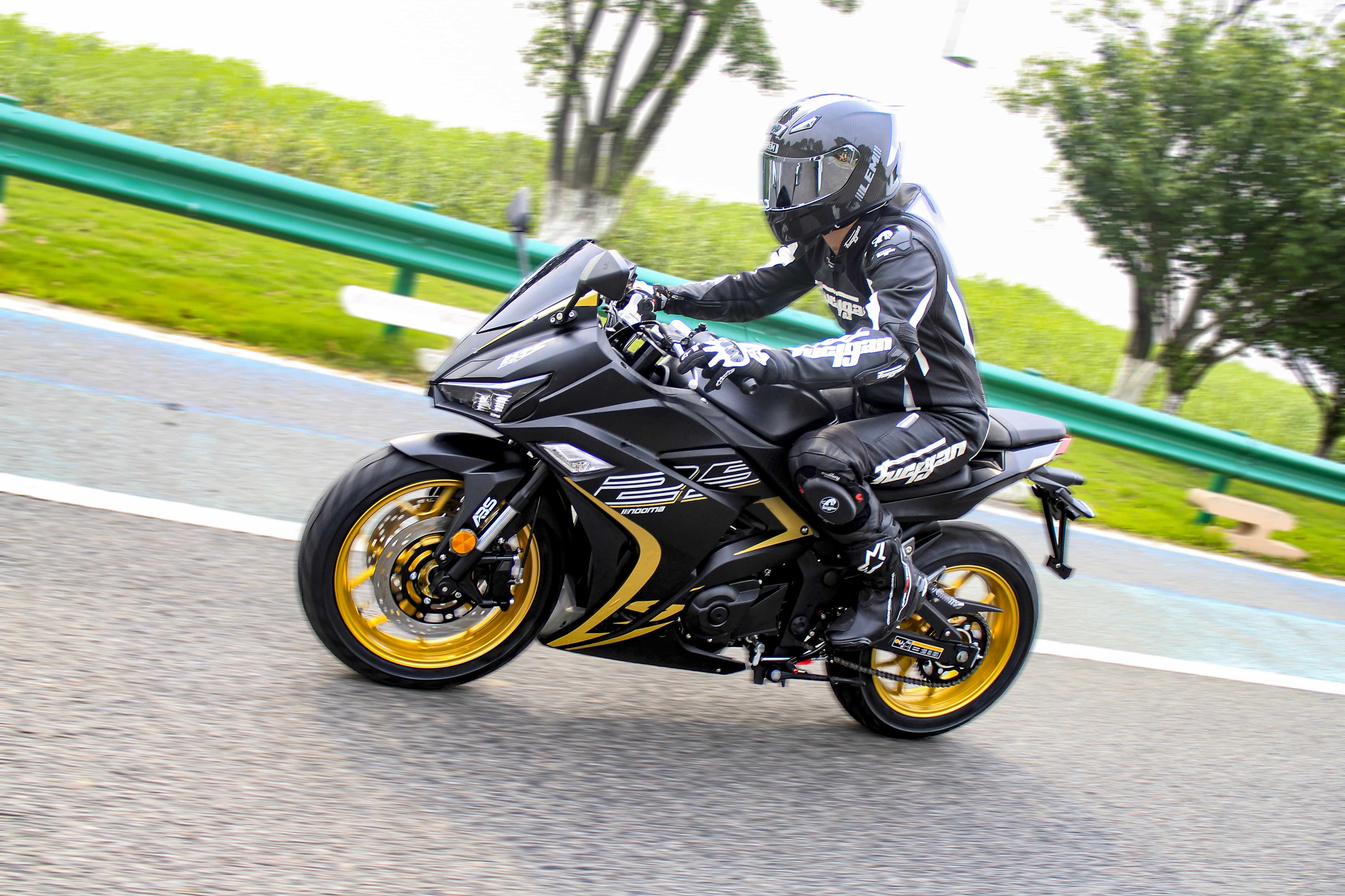 Delantero: pinza opuesta de doble pistón; Trasero: freno de disco monobloque, frenado estable y eficiente.