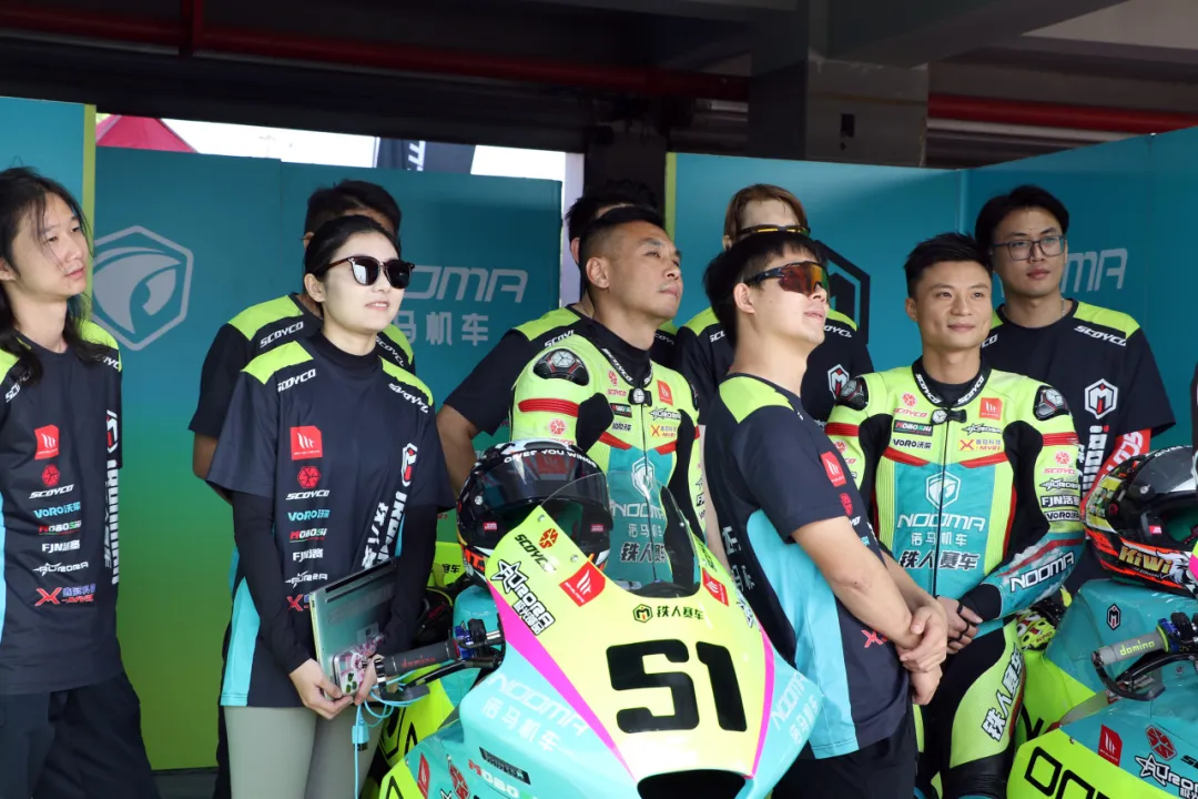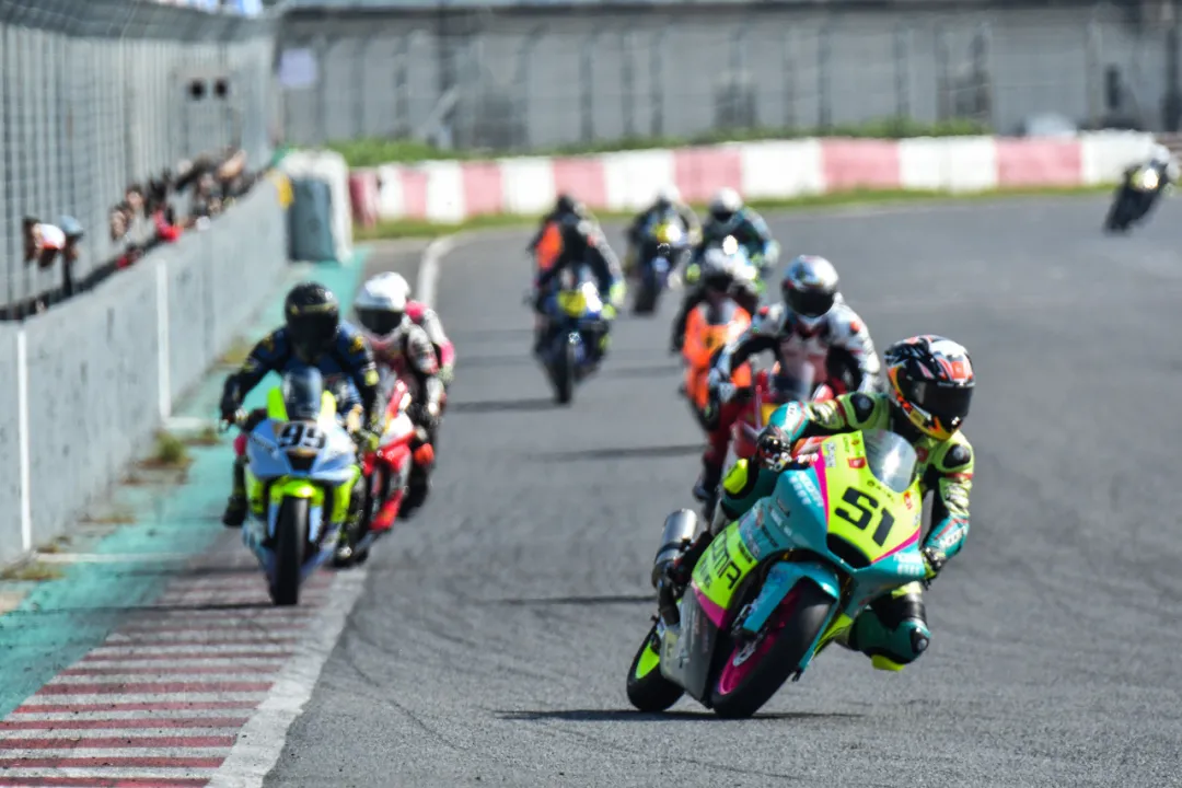 Every curve overtaking and unexpected variable in motorcycle racing is full of suspense and surprises, enough to make every one present boil with passion. The second round of the race was even more thrilling, with the No. 51 starting from pole position slightly later and being overtaken by the second and third teams. In the first six laps of the race, the first group formed by the top four teams engaged in melee combat, alternating positions. Even if there was a slight deviation in the route or a slight decision mistake in offensive and defensive tactics, they would immediately be squeezed into the interior and lost by the opponent. Number 51 finally broke through the encirclement of T8 in the seventh lap, climbed to first place, and immediately easily widened the gap like a fish breaking free from a fishing net, making the championship no longer a mystery. Leading steadily, successfully winning the championship in the second round, with a best lap time of 1:07830, tied with the best result in the 400 group. On the 23rd, Chen Pengji came on the field with an injury, fighting for the team's honor, and the Nooma team secured the team's top spot in total points.